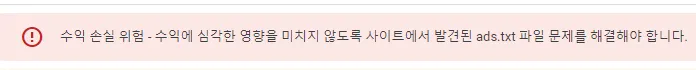 구글 애드센스 심사에 통과하고 나서 대시보드 화면에서 처음 본 메시지는 바로 ads.txt 파일 문제를 해결하라는 메시지였다.