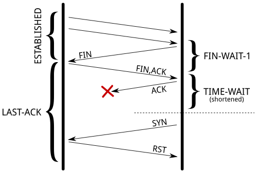 connection 의 마지막 단계에서 ACK 패킷이 손실될 경우에, 그 remote-end(상대방)은 LAST-ACK 상태로 유지된다.